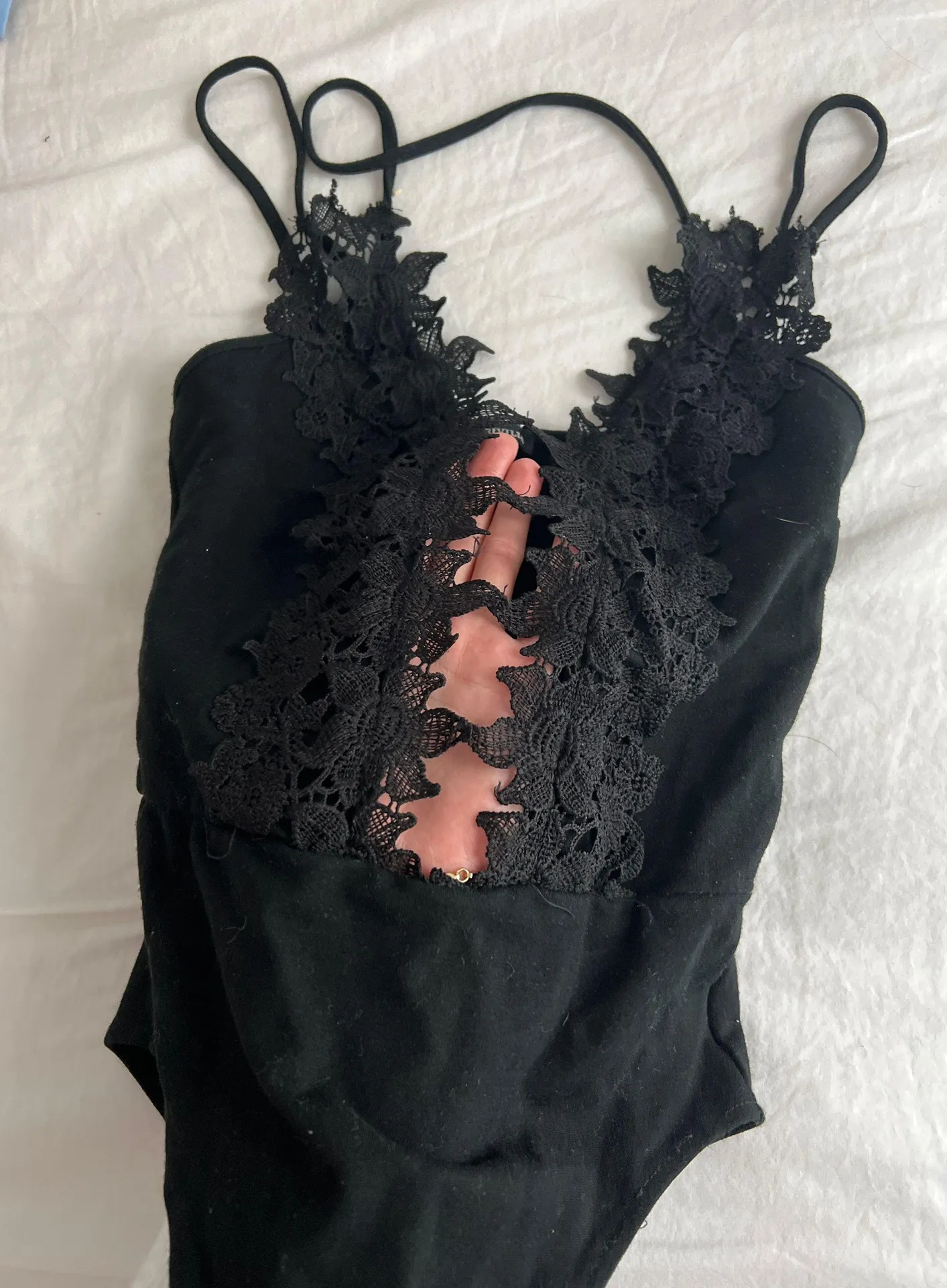 Worn a few times. Brandt bodysuit with lace trim