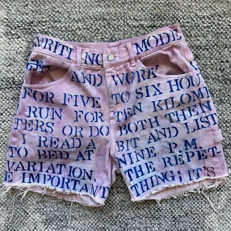 John Galt by Brandy Melville purple dyed shorts with all over writing. High waist. Pockets. 100% cot... Show more