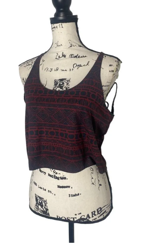 Brandy Melville Maroon & Black Geometric Flowy Crop Top One Size Boho Cami ⸻ Effortlessly chic Bra... Show more
