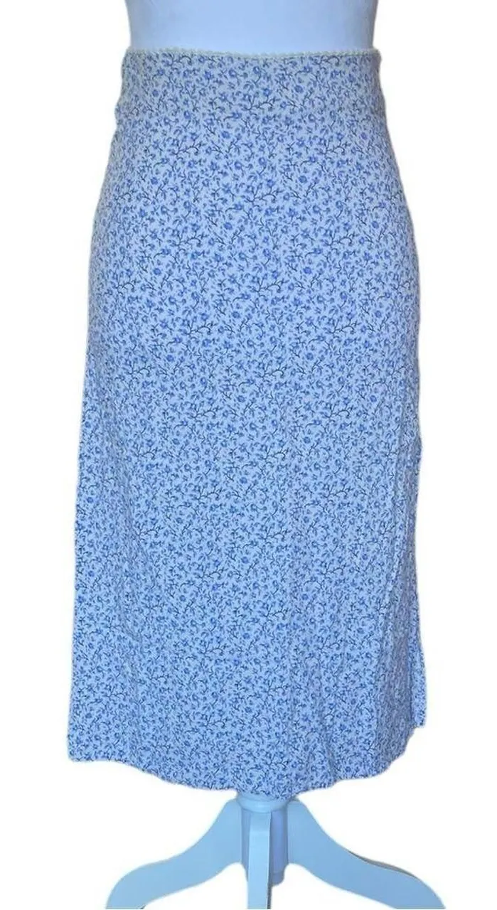 Brandy Melville Ditsy Floral Y2K Vintage Style Midi Skirt Women Small Blue White No size tag!!! Ple... Show more