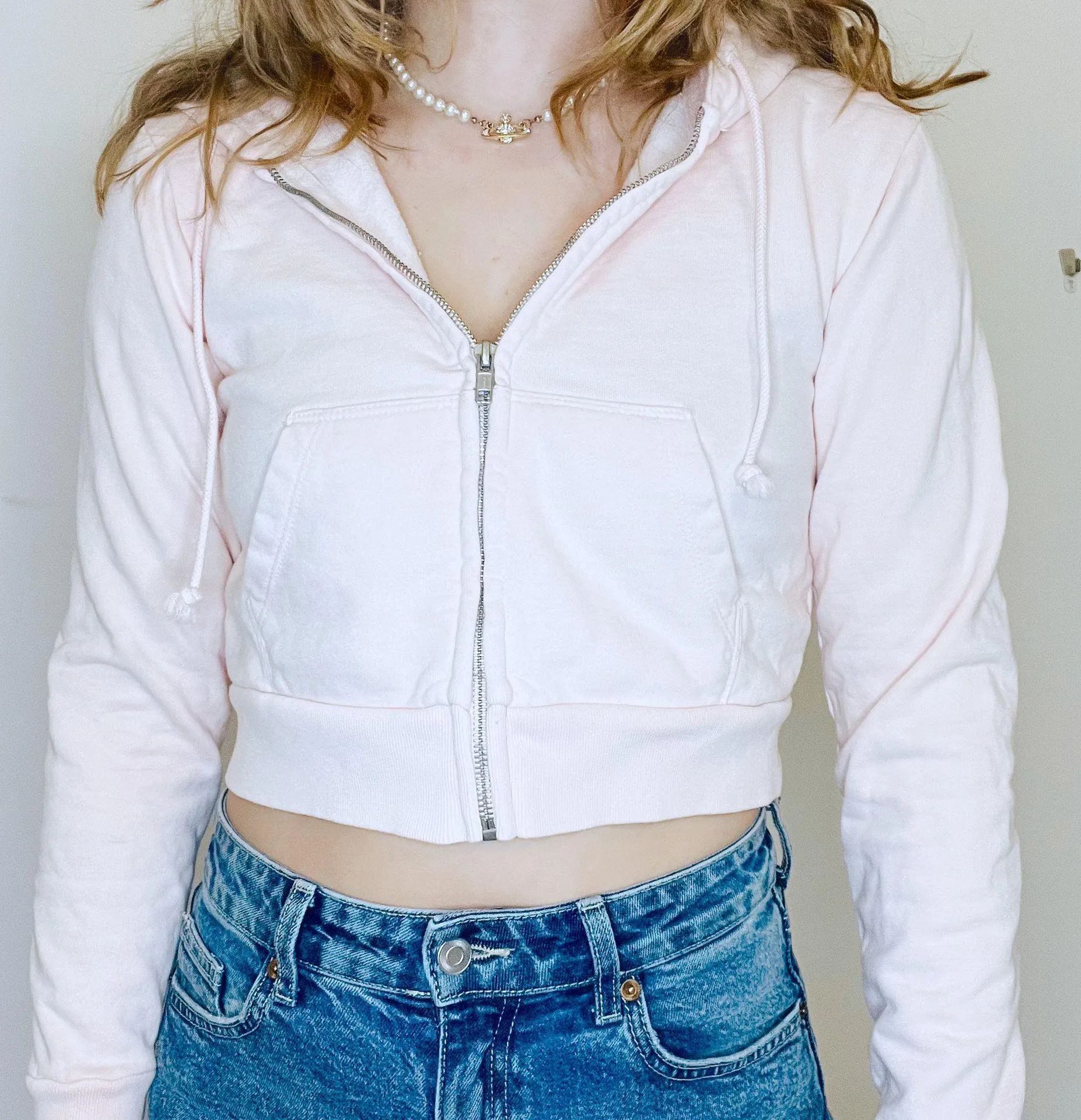Light pink brandy Melville crystal sweatshirt. Only flaw is light blue mark as shown- is detergent a... Show more