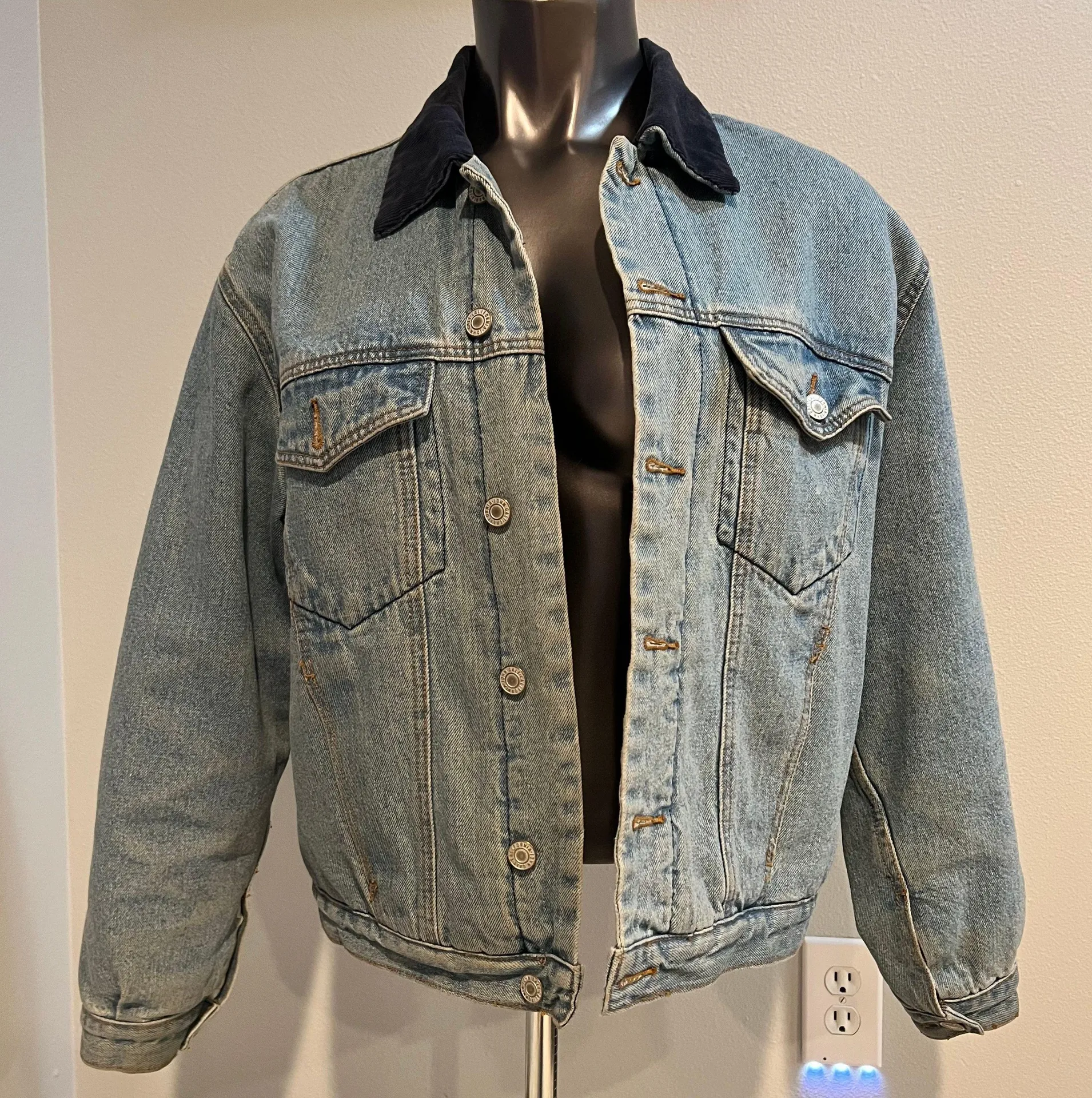 beautiful Brandy Melville sheepskin denim trucker jacket with blue denim corduroy collar. Size M! b... Show more