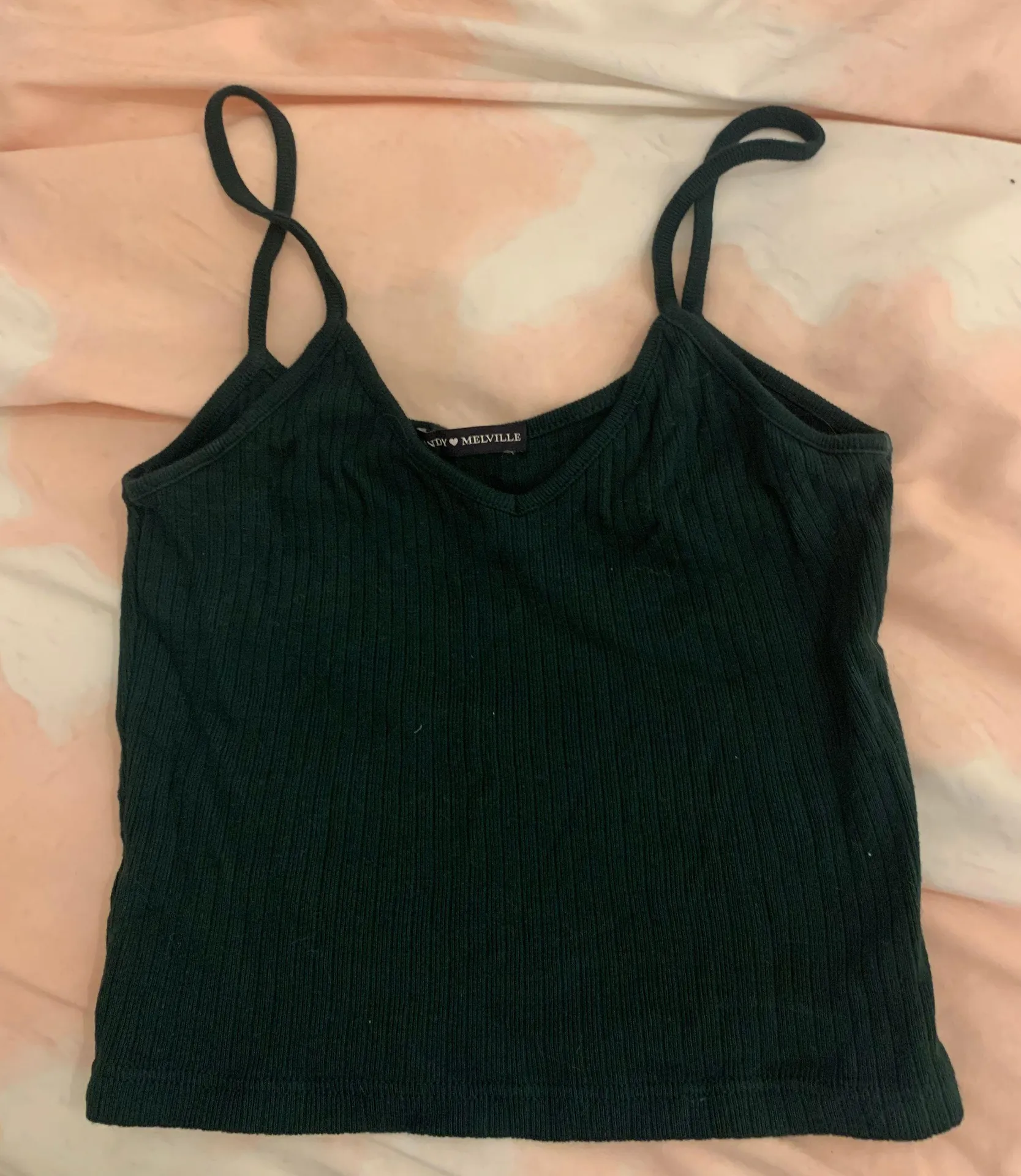 It is cropped and stretchy (so super cute and comfy!!). It is also in very good condition and worn o... Show more