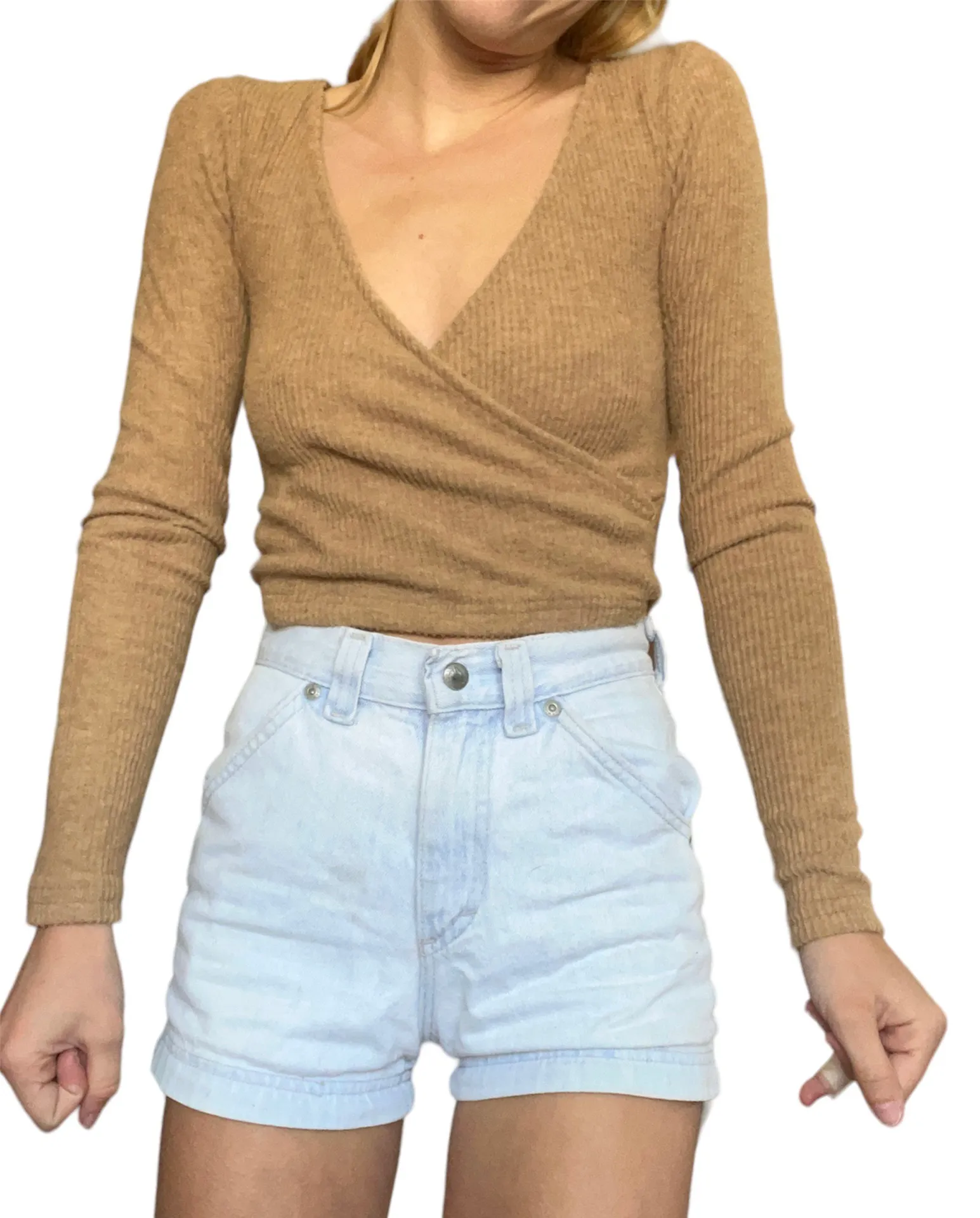 Long Sleeve V Neck Crop Top Very soft/ Ribbed I cut the tags out but believe its from Brandy Melvil... Show more