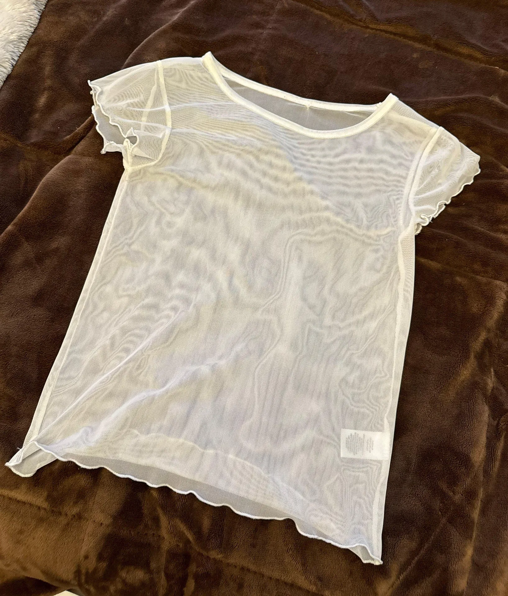 Frilly material on bottom and sleeves Super cute over a white bralette