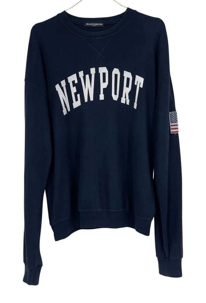 Brandy Melville Newport Navy Blue Crewneck Sweatshirt USA Flag - One Size- Great preloved condition... Show more