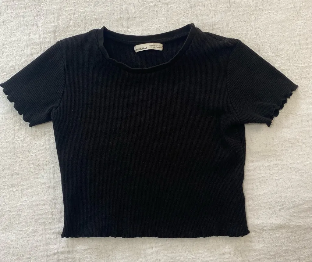 This Pull & Bear black ribbed crop top in size L has a fitted silhouette that wears more like a medi... Show more