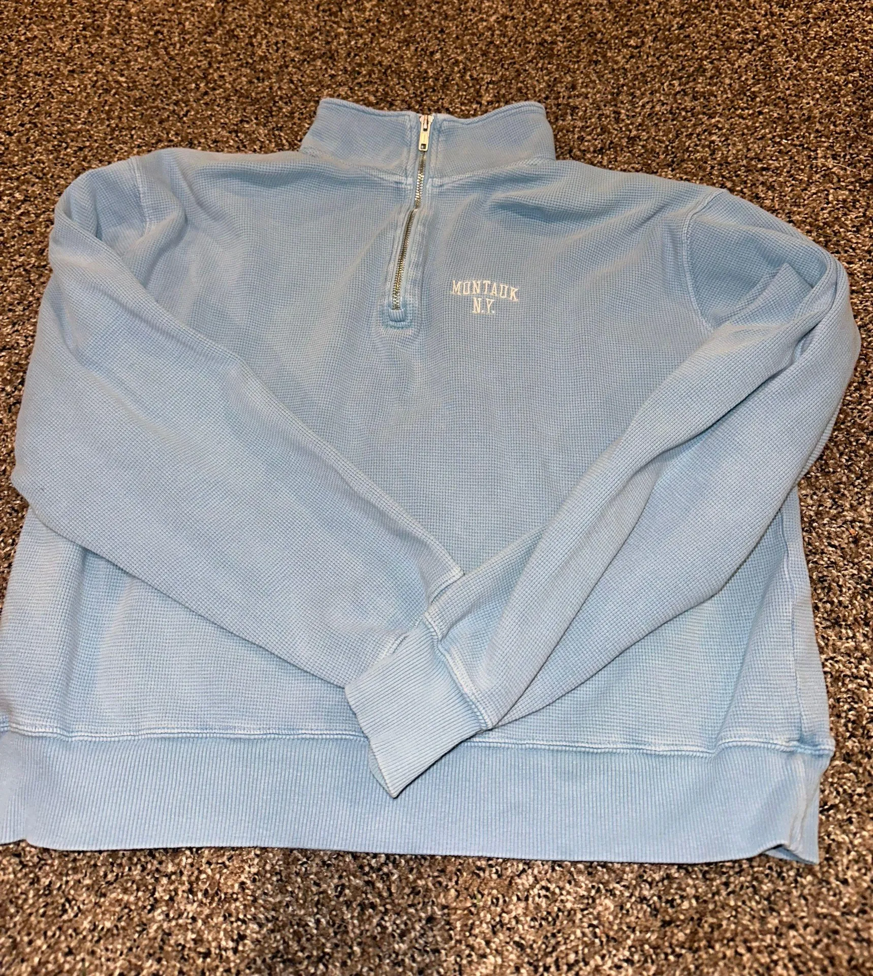 Brandy Melville/ John galt Montauk ny blue quarter zip Good condition Zipper works A bit of an ove... Show more