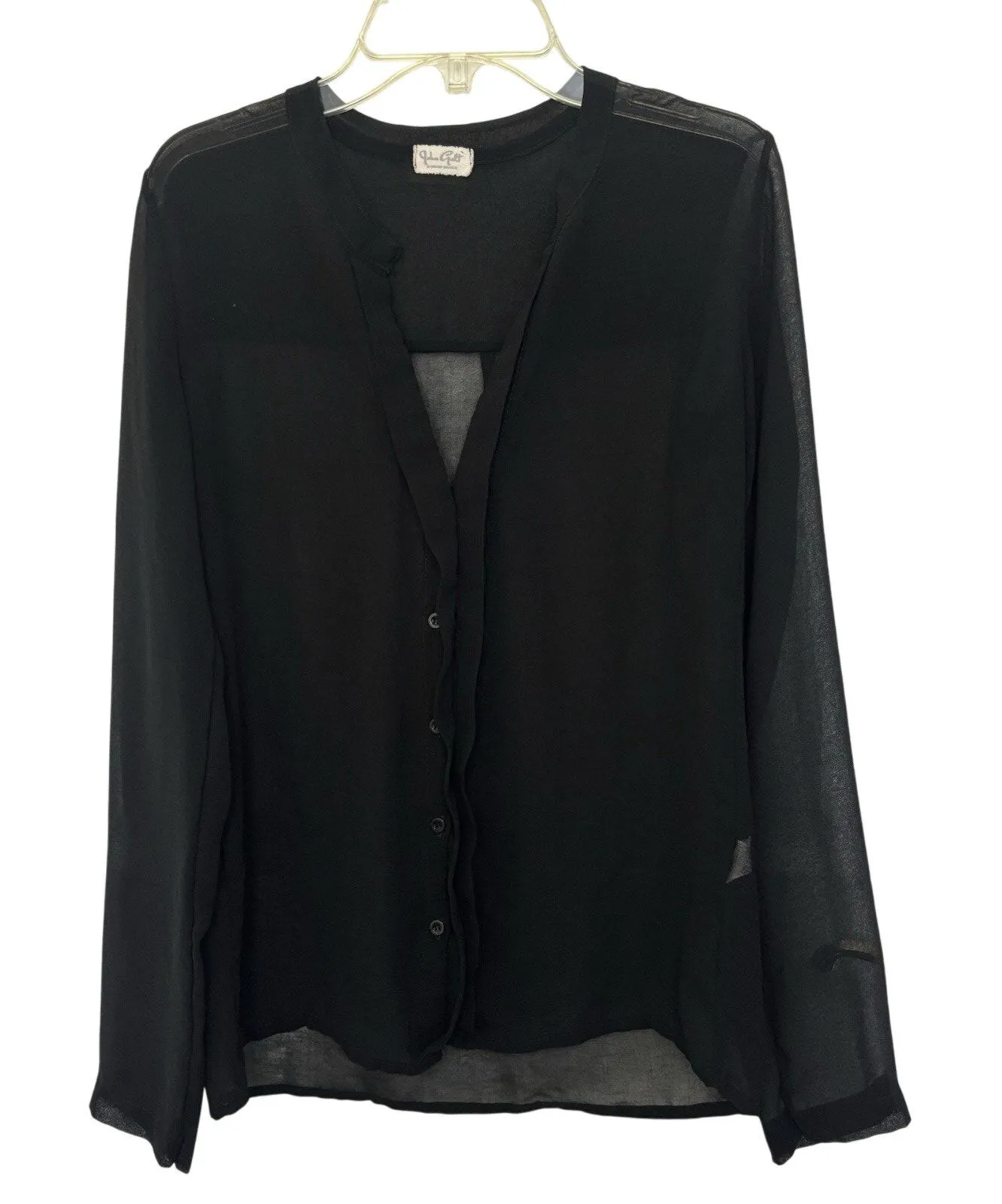 John Galt (Brandy Melville) One Size Sheer Black Button Up Top V Neck Long Sleeve Made in Italy... Show more