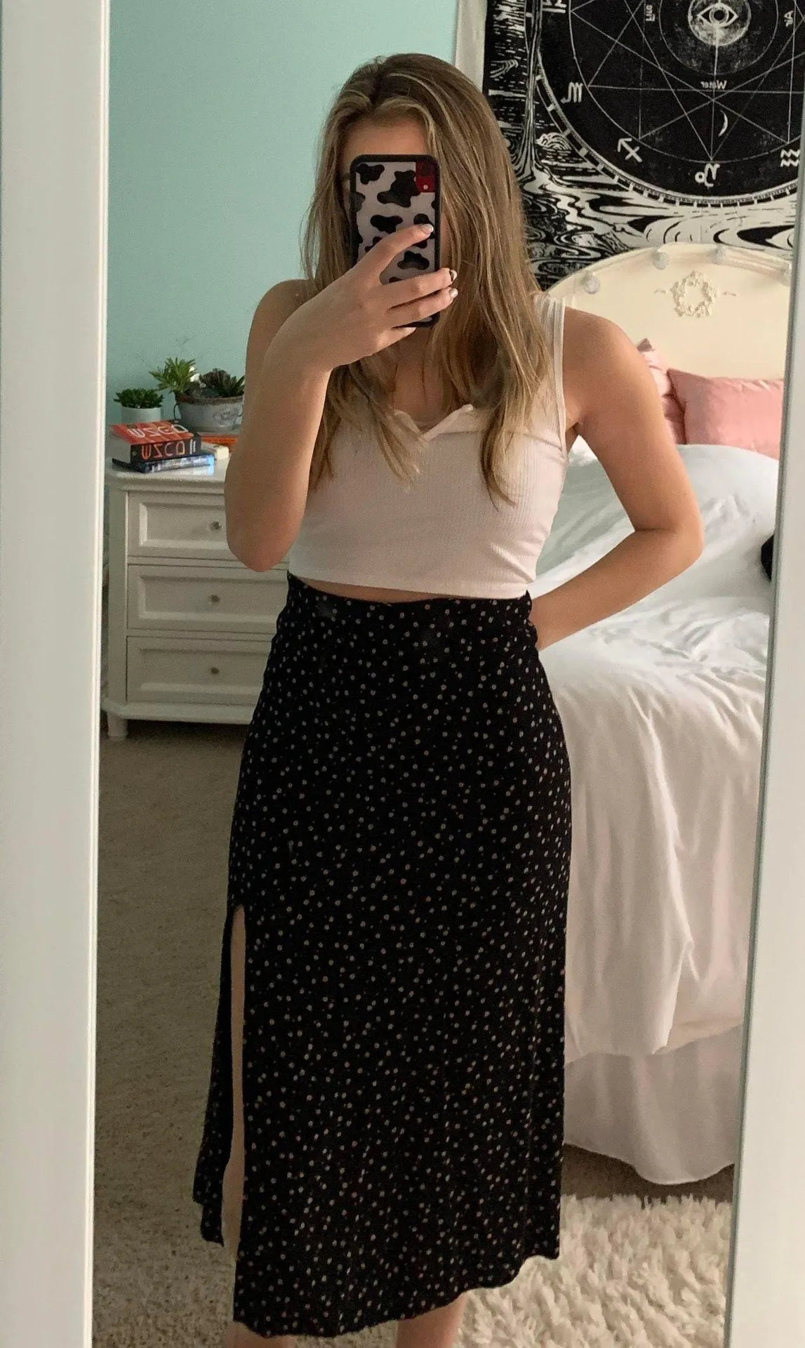 floral print brandy skirt with side leg slit fits xs-s washed it wrong and it got a bit messed up on... Show more