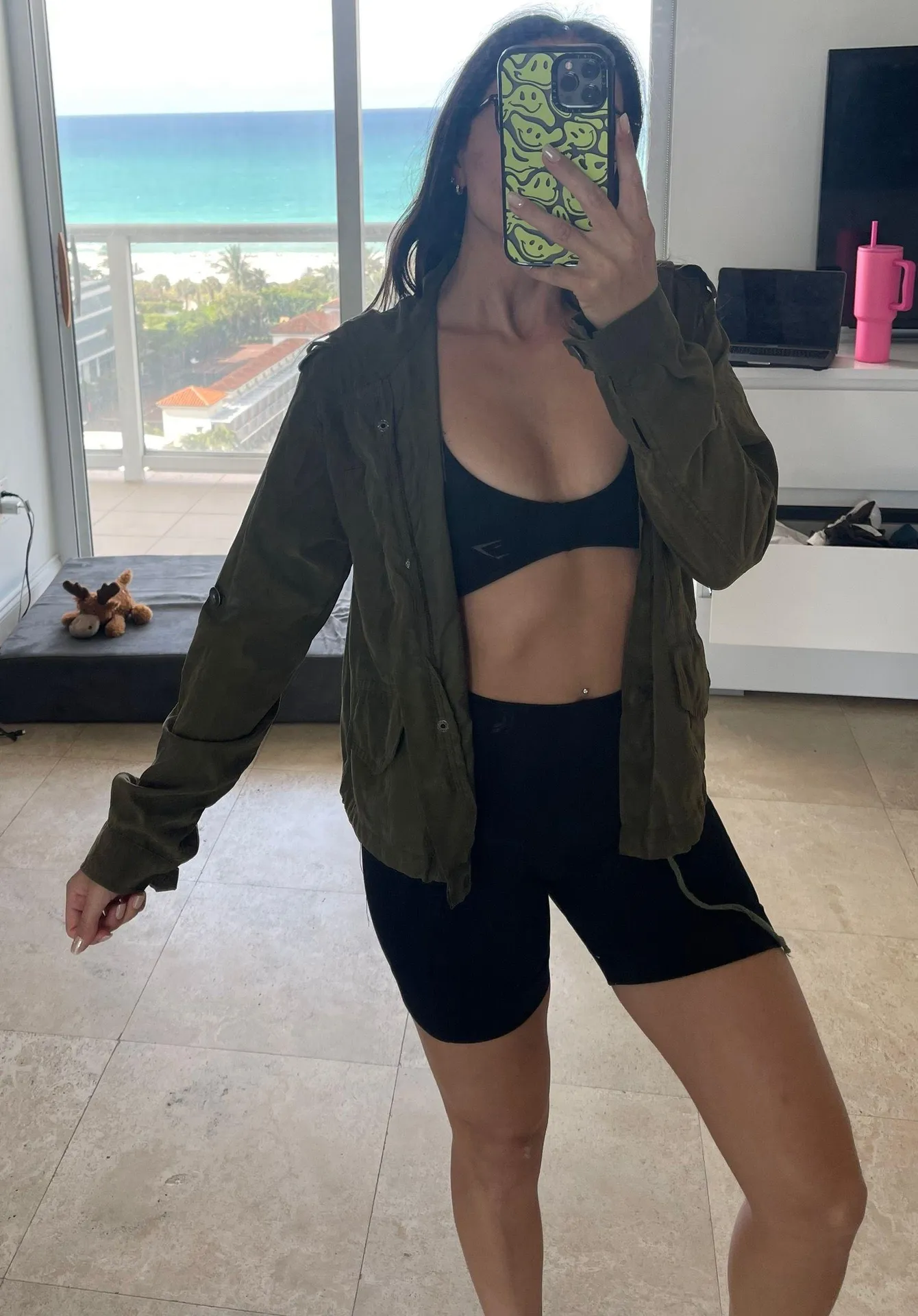 Army green suede zip up hoodie with pockets