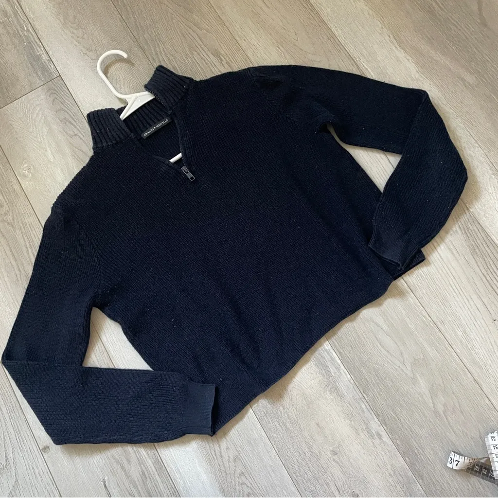 Brandy Melville Quarter-Zip Crop Sweater in the color Navy Blue. Collared, quarter zip, long sleeve.... Show more