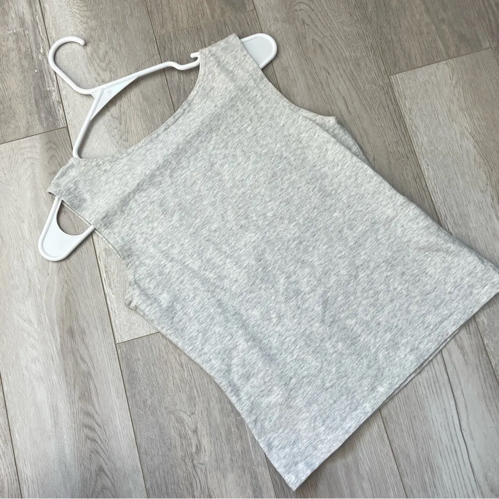 Brandy Melville High-Neck Crop Tank Top in the color light gray. High neckline, sleeveless, crop len... Show more