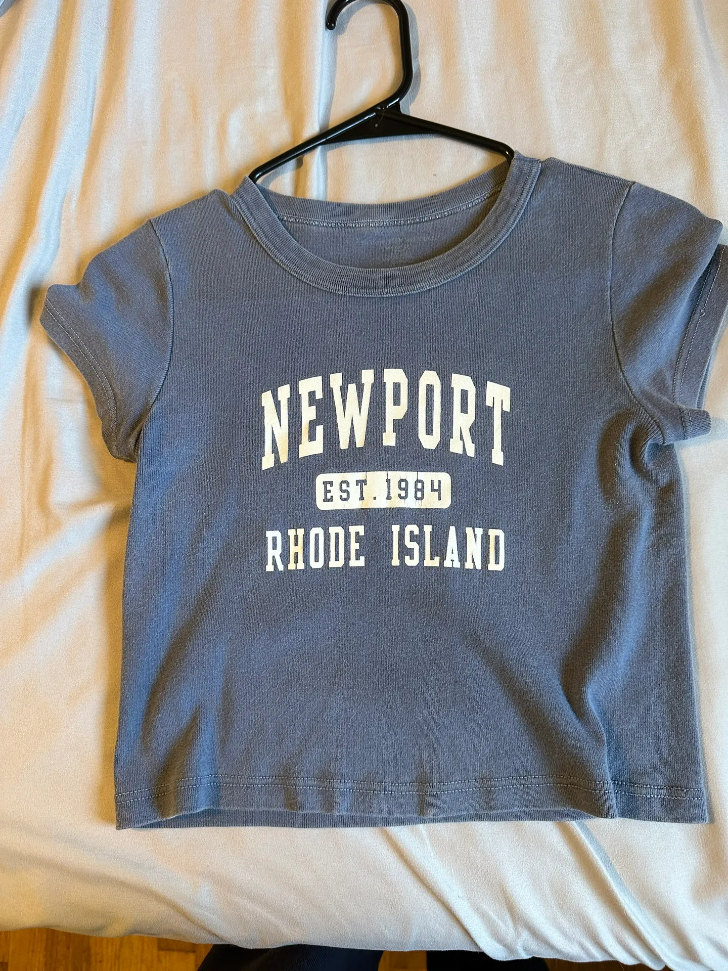 Super cute navy blue Newport baby tee only flaw is slight in the letters just from wear