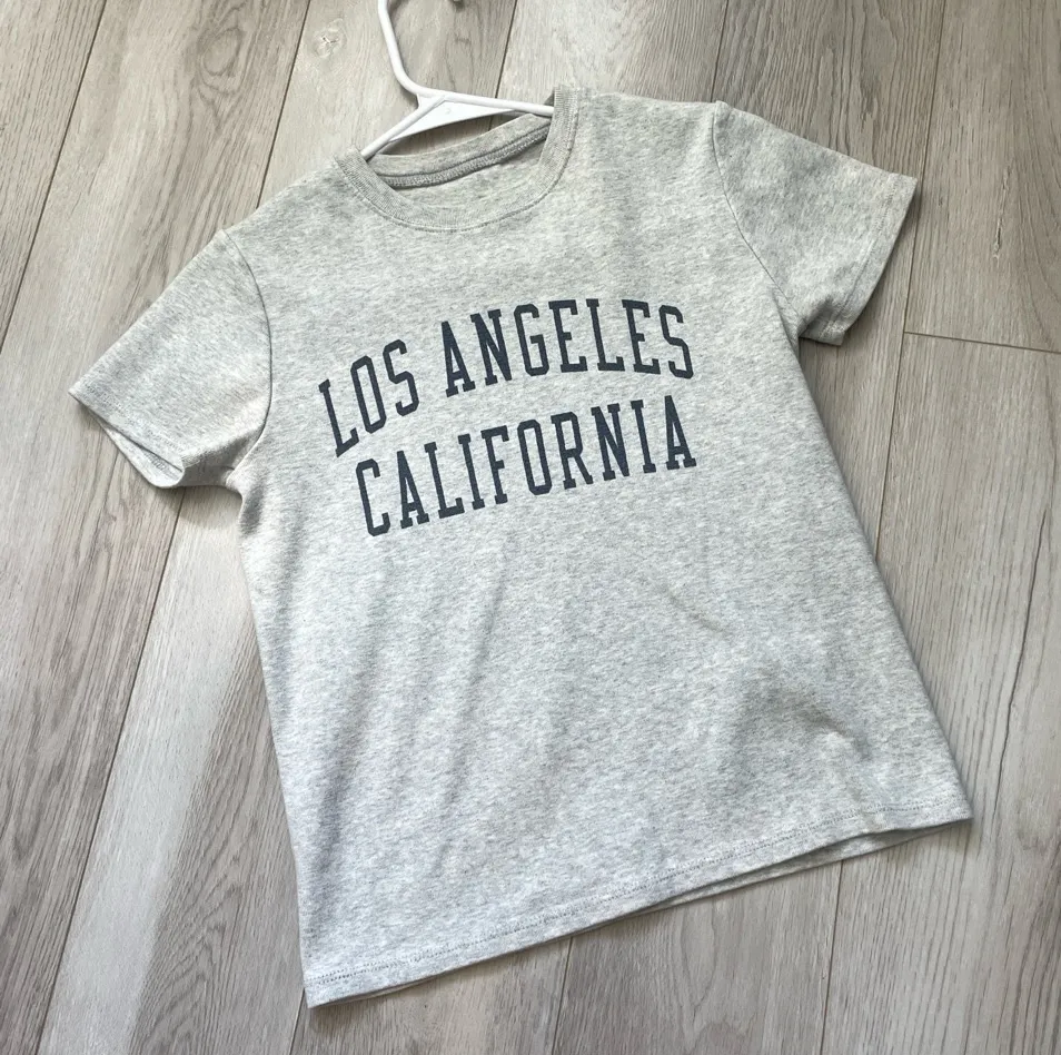 Brandy Melville Los Angeles Tshirt in the color Gray with blue lettering. Crew neckline, short sleev... Show more