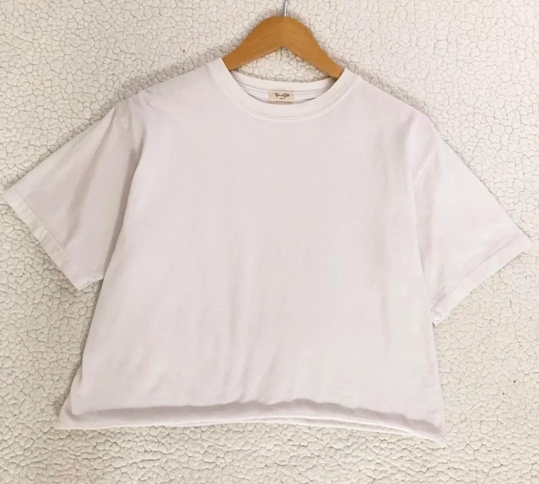 Size Small, best for XS - S -Basic white crew neck short sleeve tee with rolled hem and a relaxed fi... Show more