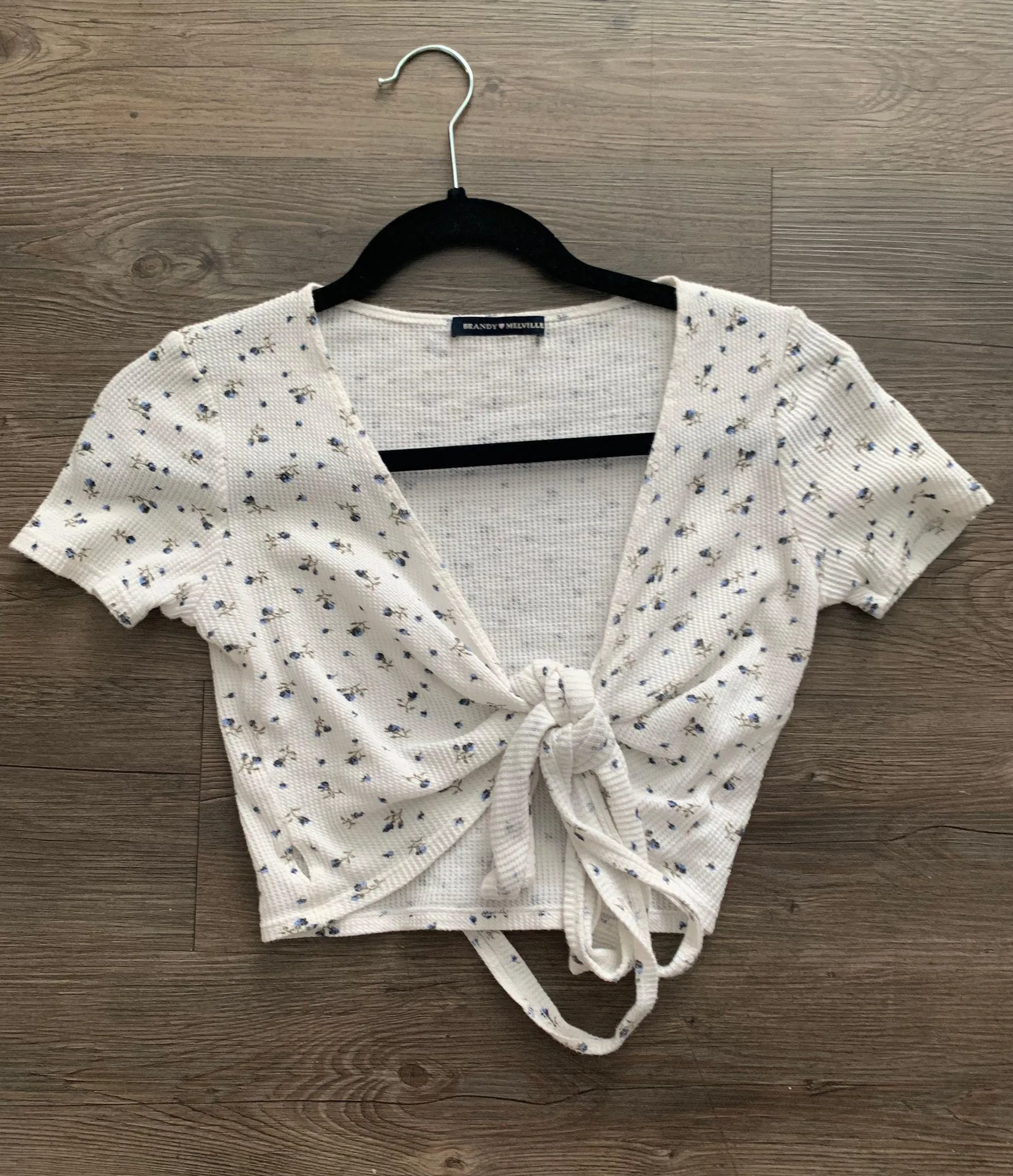 Ribbed wrap top Ties however you like No damages Small blue flowers as the design