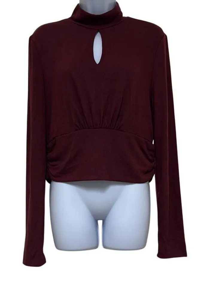 Brea Canyon Womans XL Maroon Mock Turtleneck Keyhole Long Sleeve Blouse NEW Mock turtleneck Keyhol... Show more
