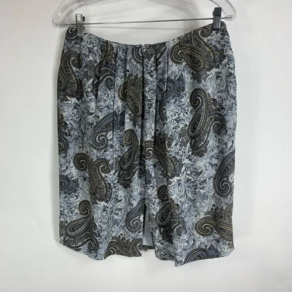 100% Silk Paisley Skirt Blue Grey Black Sz 12 - $25 - From Mallory