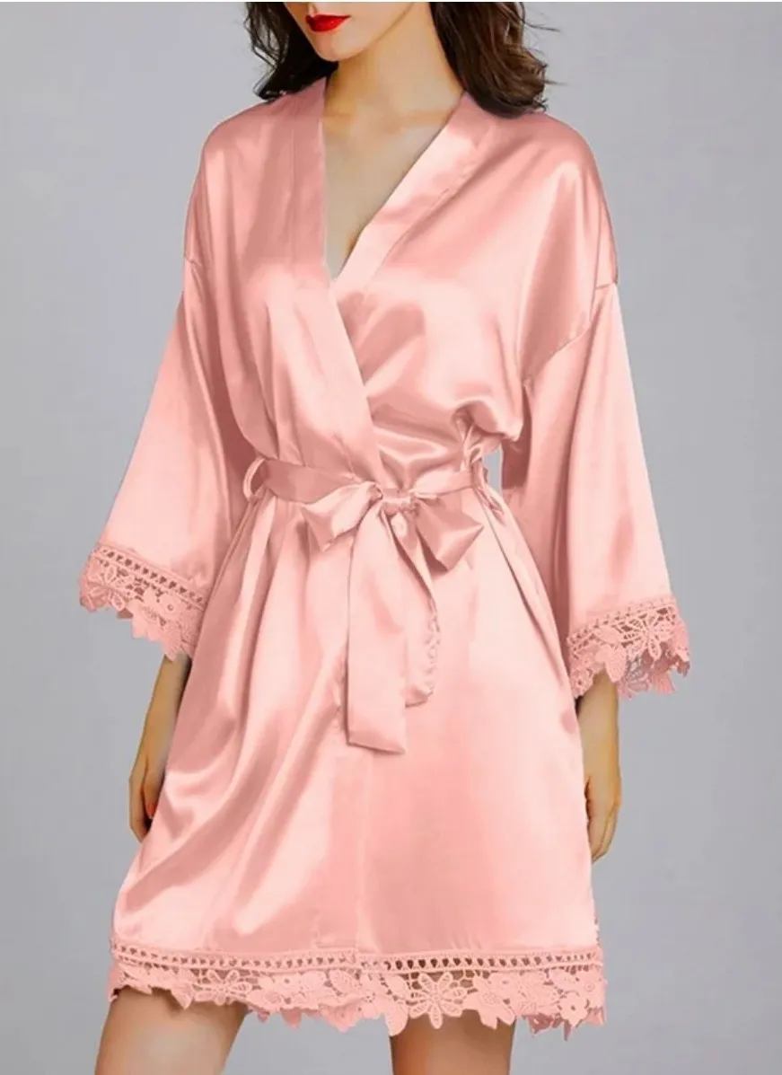 Bridal/ Bridesmaid Satin Pink Lace Crochet Floral Detail Robe OS. - $25 - From Jaime