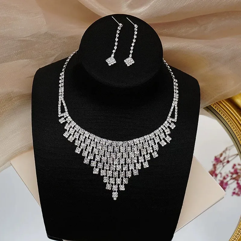 Bridal Wedding Jewelry Set Rhinestone Bridesmaid Party Choker Necklace Drop Dangle Earrings Set Silver - $16 (55% Off Retail) New With Tags - From Sunshine
