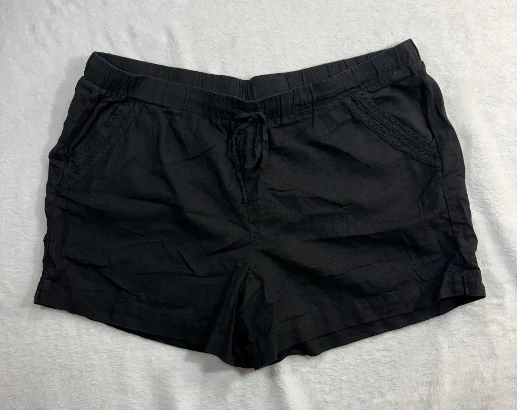 ✧ Size: XXL ✧ Material: 55% Linen, 45% Rayon ✧ Style: Relaxed fit pull-on shorts ✧ Features: Side an... Show more