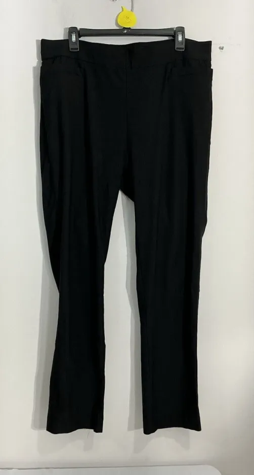 These black Briggs New York pants are a must-have for any woman's wardrobe. The pull-on style with an elastic waist makes them comfortable and easy to wear. The pants are designed with a regular size type and are suitable for women. The pants come in size 16. The pants have a stylish ankle length and are perfect for any casual occasion. They come in a classic black color that can be paired with any top. The pants also have a brand tag, which adds to their value. Get these beautiful Briggs New York pants today and add a touch of elegance to your wardrobe. These pants are pre owned and look to be in excellent condition!