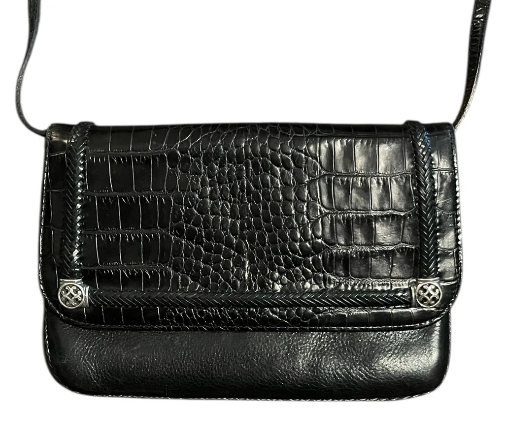 Adorable croc embossed and braided leather Brighton crossbody bag with silver hardware and black and... Show more