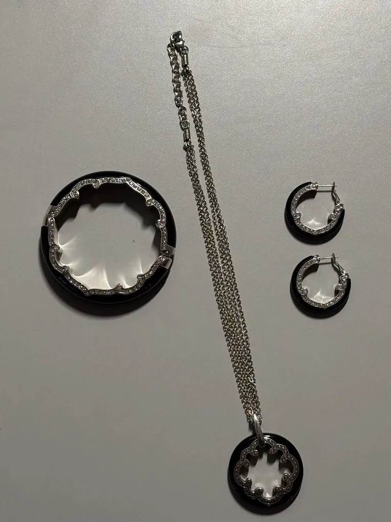 Brighton Imperial Black Swarovski Crystal Necklace Bracelet Earrings Set Silver Resin Retired Rare... Show more