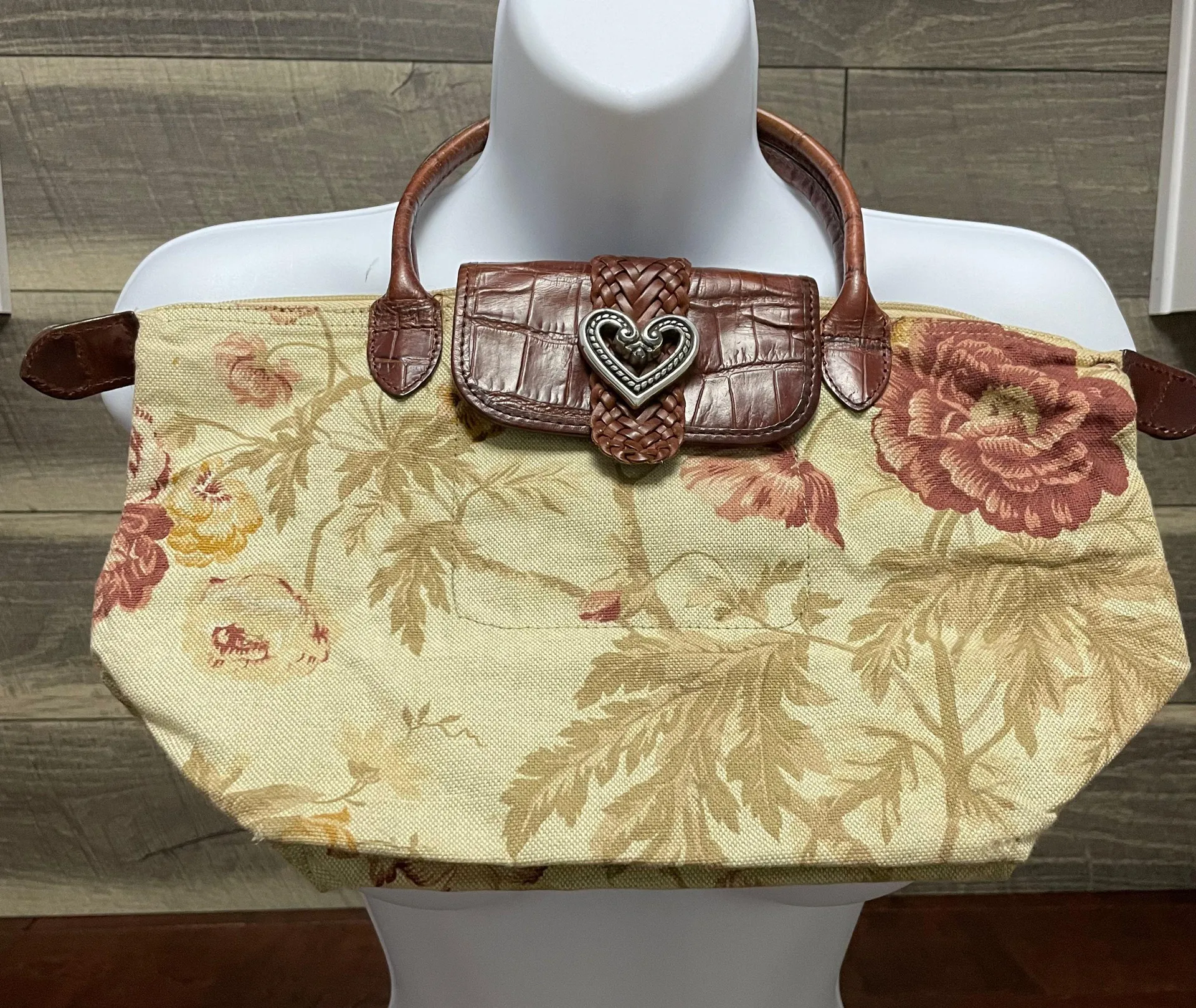 Vintage Brighton Floral Tapestry Convertible Handbag Purse Cream Brown Olive Beautiful convertible... Show more