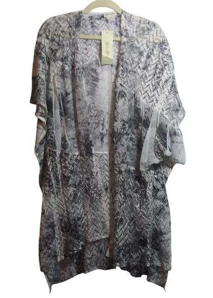 Brittany Black Artsy Floral Women's Gray Lace Patterned Kimono Cover Up Size 1X Elevate your style... Show more