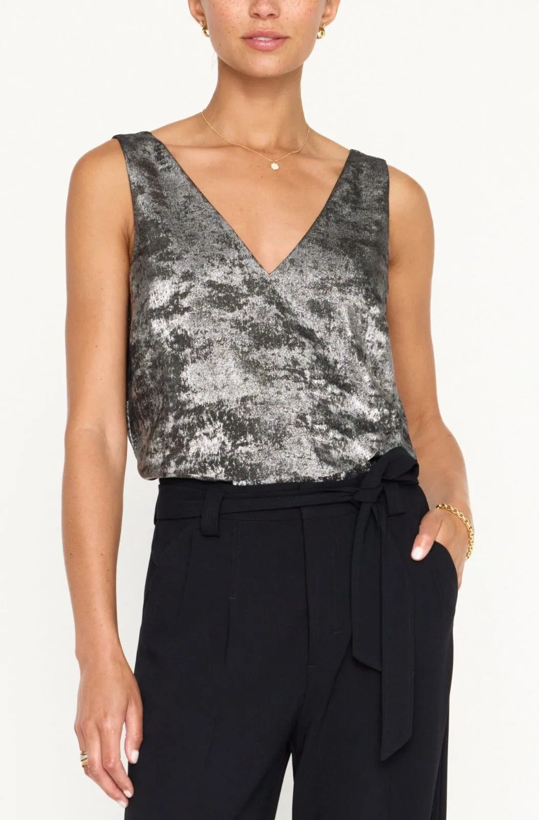 Brochu Walker The Oda Tank Double V Neck Top in Metallic Silver & Black size extra small From luxur... Show more