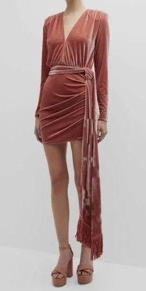 Bronx & Banco Women’s Rihanna Pink Blush Velvet Long Sleeve Mini Dress Fringe Scarf Size US 2/ XS N... Show more