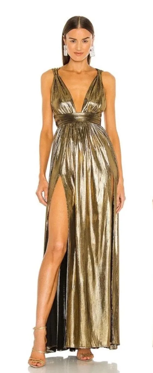 New with tags from Bronx and Banco Revolve the Goddess Gown in Gold Metallic Size Small MSRP $700... Show more