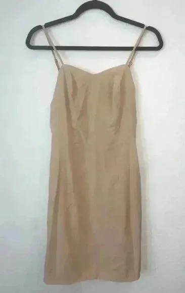 Size small or US 4 Condition: NWOT - small unnoticeable scuff/small rough spot on right side seam (likely where tag was removed from) can be seen if you zoom in on 4th picture. No holes or stains and otherwise in perfect condition. Brand: Bronx & Banco Style Number: 003647 Category: Dress Style: Slip Collar Style: V-neck Fastening: Zip Closure Length: Above-Knee Material: 20% Silk 80% Polyester Length 27.5", 12" bust