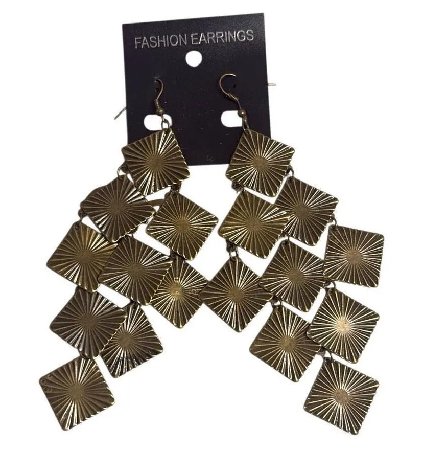 Bronze Geometric Square Chandelier Dangle Fashion Earrings Deco Boho 4.5" NEW Tan - $13 New With Tags - From Amie
