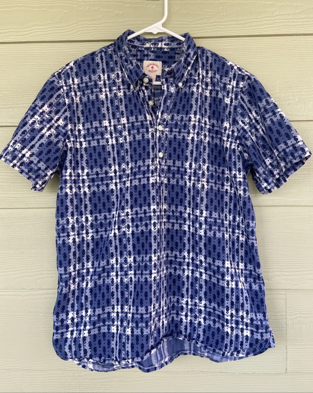 Brooks Brothers Blue Plaid Seahorse Sea Beach‎ Popover Shirt Blouse Womens Large - $15 - From Hilary