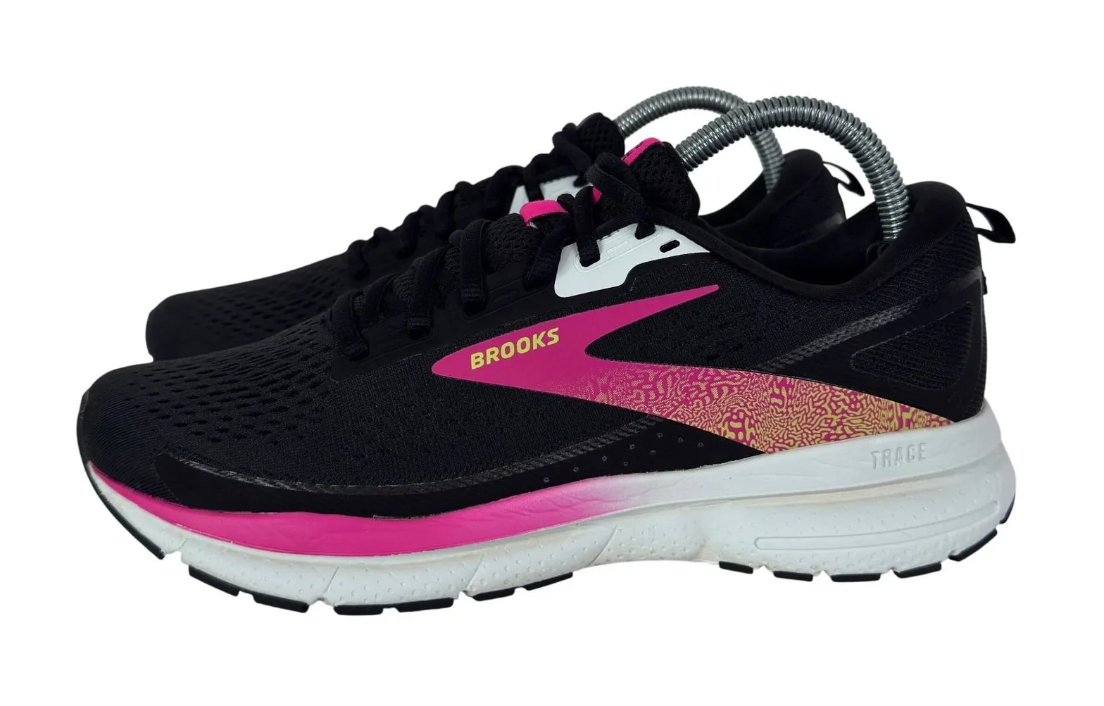 Brooks Trace 2 women's running shoes in black with vibrant pink accents. Gently worn with signs of... Show more