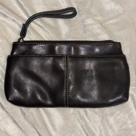 BROWN FAUX LEATHER WRISTLET ONE ZIP POCKET ON OUTSIDE AND FULL ZIPPER CLOSURE - $20 - From Nancy