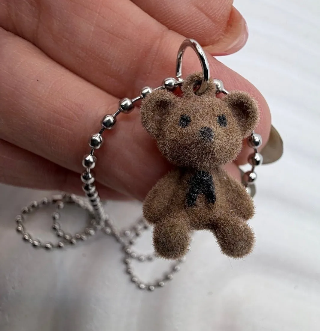 Cute and cozy necklace featuring a soft brown teddy bear charm on a shiny silver-tone ball chain. The fuzzy texture and minimalist style make it perfect for Y2K, soft girl, and cozy aesthetic looks. Lightweight and versatile — wear it solo or layered with other necklaces for a trendy touch. Details: • Type: Pendant Necklace • Color: Silver & Brown • Chain Type: Ball chain • Length: Approx. 11.5 inches drop (23" total) • Pendant: Mini plush-style teddy bear • Condition: New without tags • Style: Y2K / Korean fashion / Coquette / Minimalist Perfect gift or collectible piece for teddy bear lovers and cozy outfit lovers. ⸻ #TeddyBearNecklace #Y2KJewelry #SoftGirlStyle #CuteAccessory #KoreanAesthetic