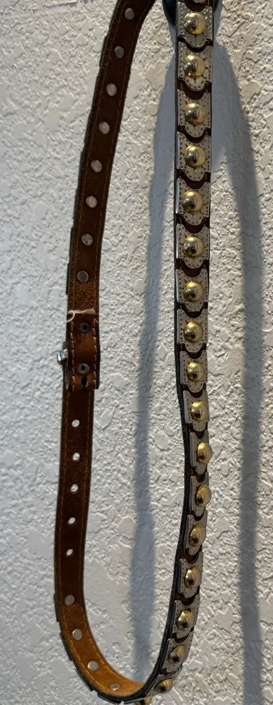 Brown Leather Western Belt with Silver Tone & Brass Tone Accents 30 inch to 33.5 - $25 - From Katrina