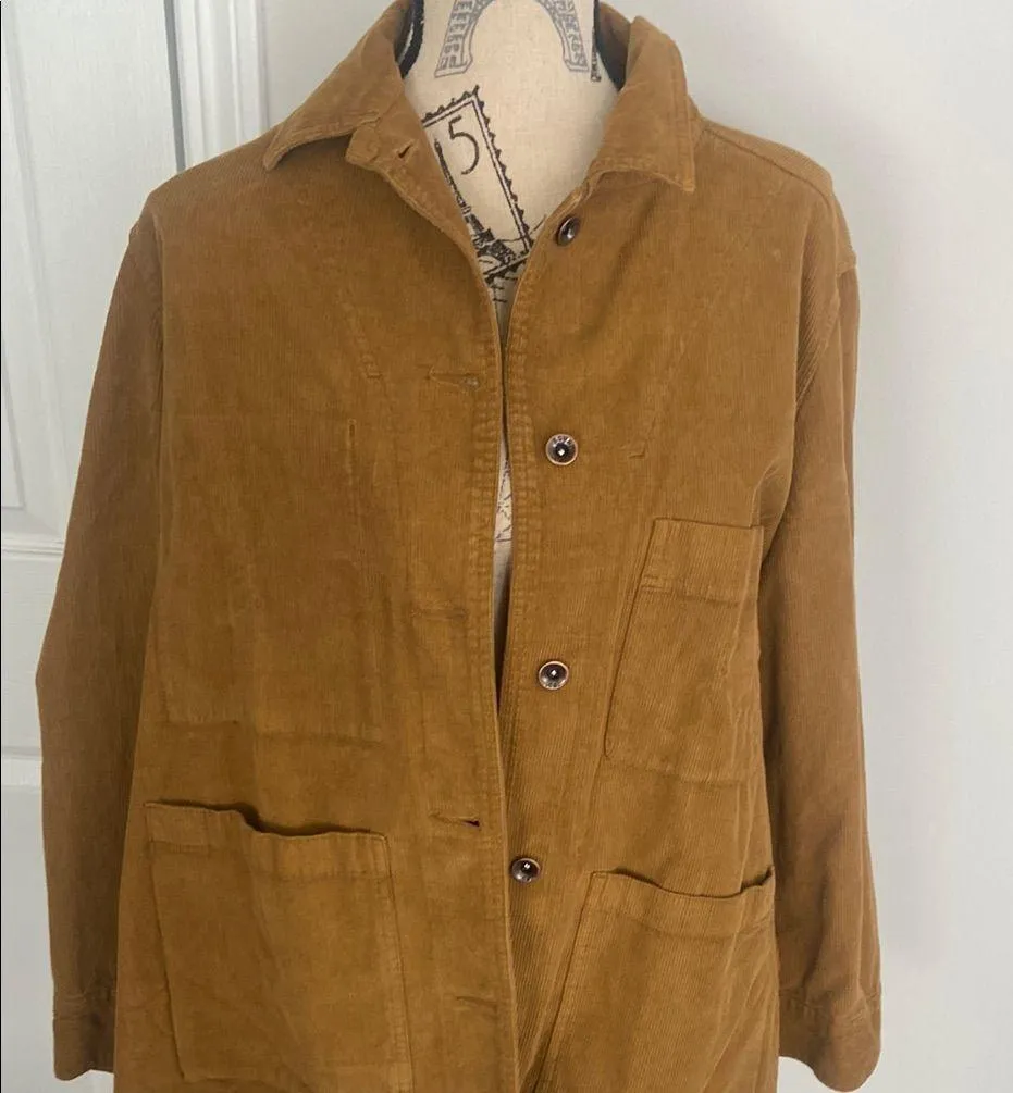 NWT ROWAN Abbot Cord Chore Jacket Women's large Button Front Pockets Amber Grain This brown lightweight shirt jacket combines the timeless appeal of corduroy with a casual, versatile design. Its warm hue and textured fabric make it an ideal choice for layering during transitional seasons. Perfect for adding a touch of classic style to any outfit.