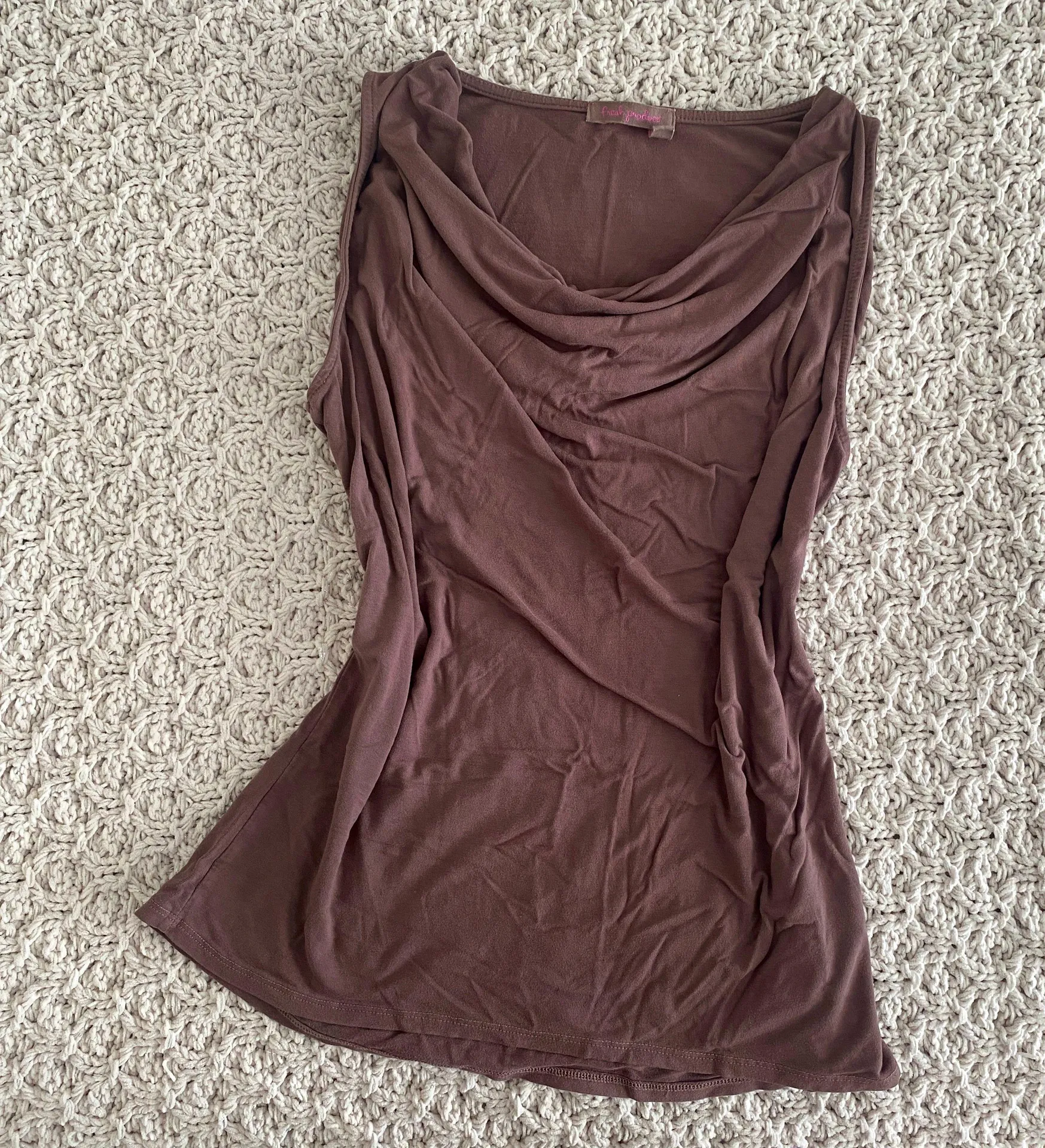 cowl neckline, stretchy through out slight color faded wear, rayon & lycra size x-small from fresh produce fits a small/medium size, Final Sale Price! y2k cowl neck 90s 2000s fairy core boho zara glassons polly motel