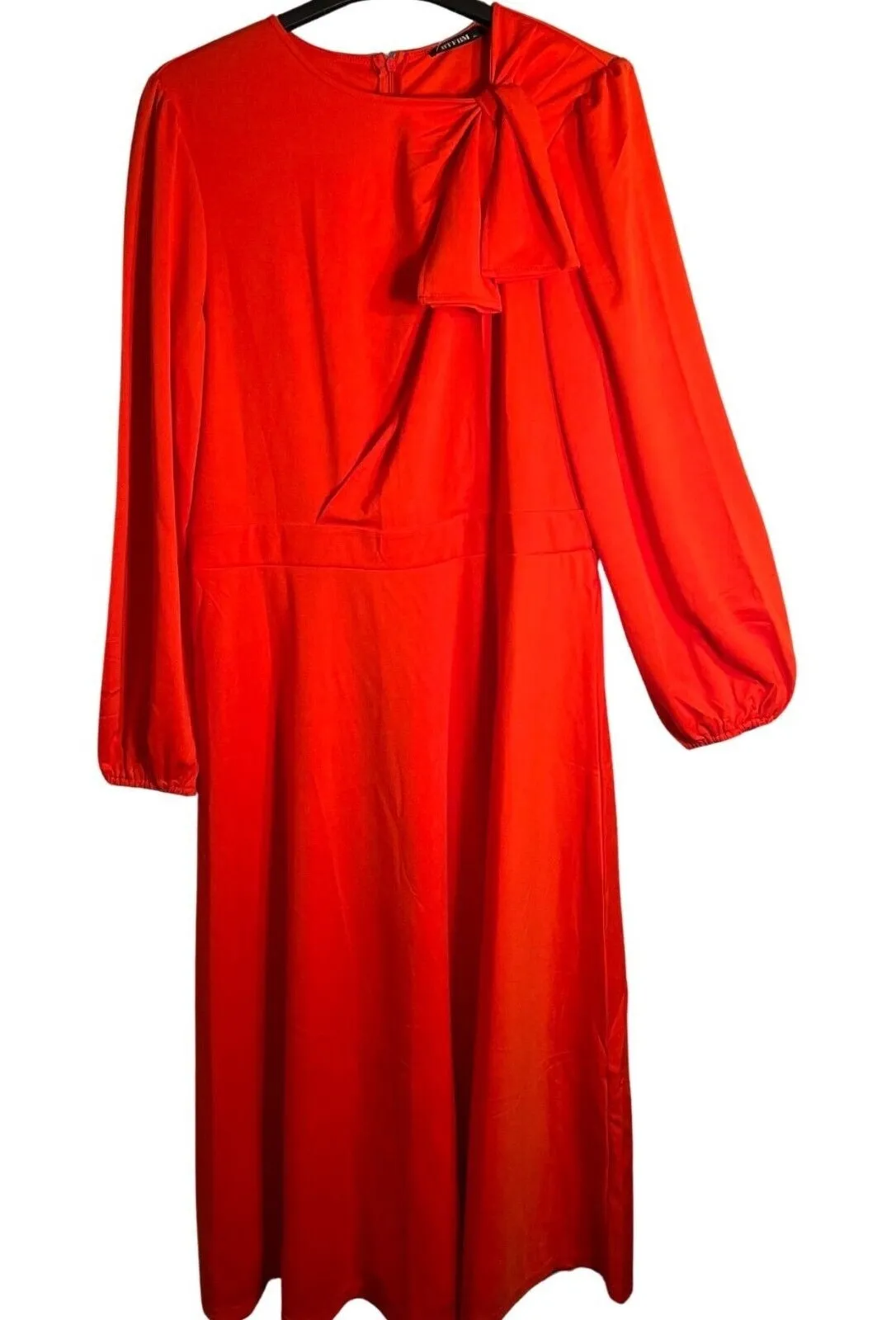 BTFBM ~ Womens Red Dress Size XL NEW WITH TAGS 20" armpit to armpit 18" shoulder to shoulder 23" sleeve 51" length ** lightweight fabric ** midi length ** long sleeves ** cinched waist ** faux shoulder tie accents ** zip closure ** solid pattern ** crew neckline ** blend of polyester and spandex ** rayon fabric type ** machine washable ** all items stored in a smoke-free & pet free home