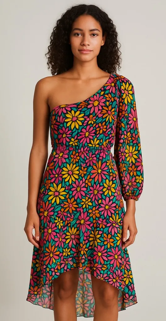 New with tags. Size small One shoulder, one long sleeve High low Floral details