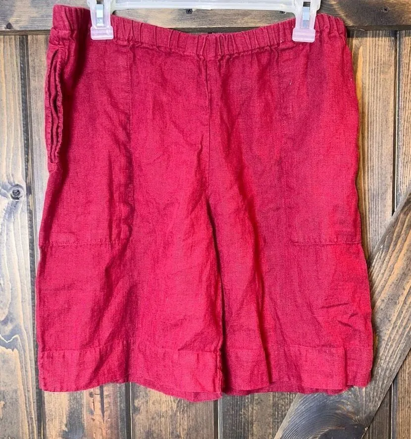Chicos Shorts Bermuda Linen Pull On Pockets Casual Relaxed Sz 1 Maroon *waist 15” *rise 11” *inseam... Show more