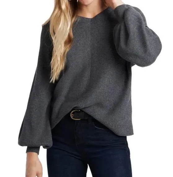 New with tags Women’s 1. State Ribbed Balloon Sleeve Cotton Blend Sweater In Medium Heather Grey... Show more