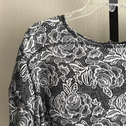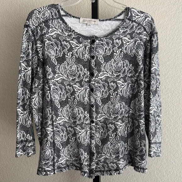 Romantic Monochrome Statement Jones New York Sport Woman 2X Floral Print Cotton Knit Top Button Det... Show more