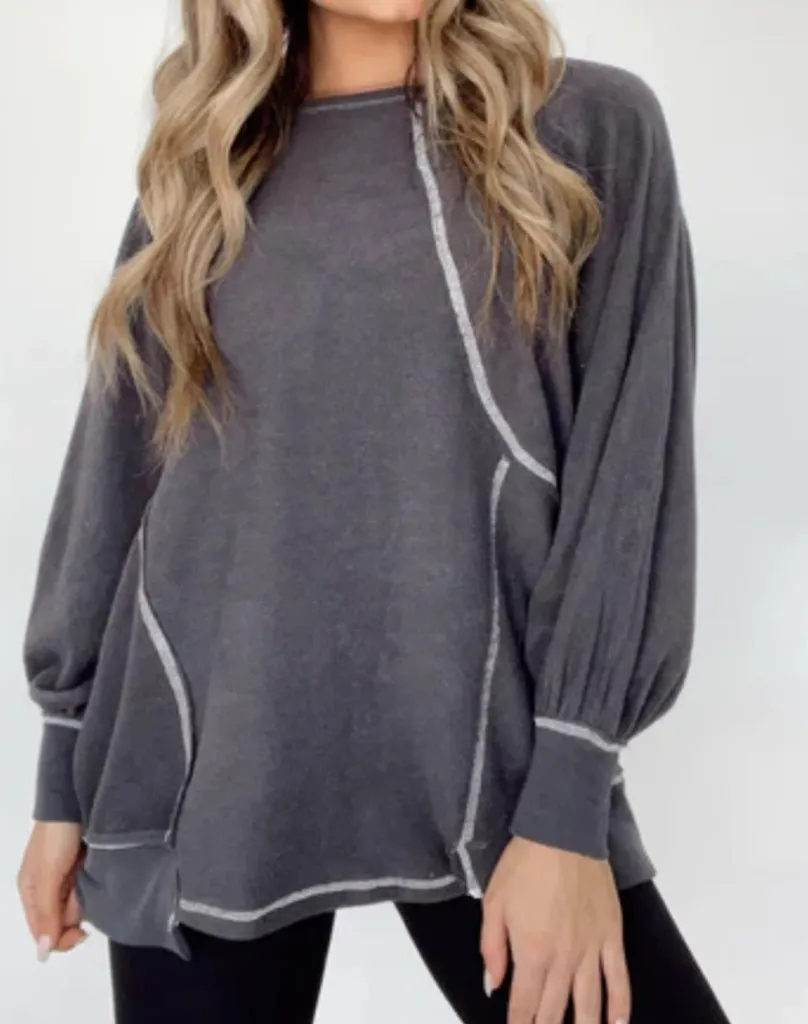 Bucketlist Adair Style Studio French Terry Relaxed Oversized Top Sweatshirts charcoal with white sti... Show more