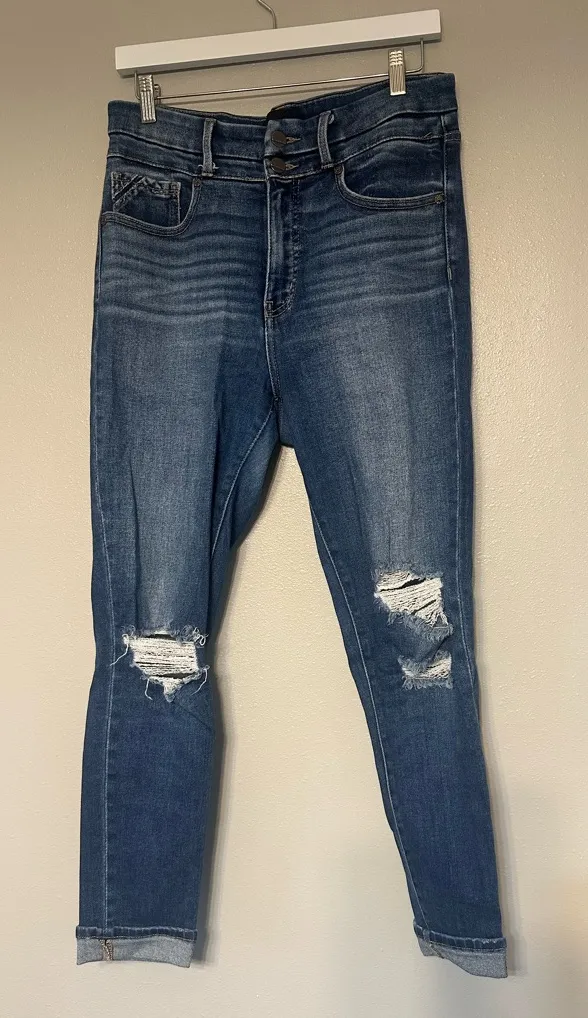 Has distressing and double button high rise good condition size 28x27 Shop Details -- Love the ite... Show more